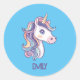 Pegatina Redonda Magnífico pastel de unicornio con nombre de niño