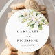 Pegatina Redonda Magnolia Blanca Elegante Boda acuarela Floral