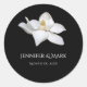 Pegatina Redonda Magnolia Blanca Elegante Boda Negro y Blanco