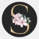 Pegatina Redonda Magnolia floral monograma en letra oro S