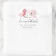 Un elegante par de magnolias florales color agua rosa resaltan este agradecimiento a favor del pegatina personalizado con el nombre de la novia y el novio y la fecha boda.