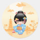 Pegatina Redonda Maiko Kokeshi Muñeca Cute Geisha Chica Amarillo
