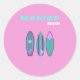 Pegatina Redonda Malibu, Malibu Beach, California, Preppy, Pink