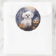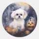 Pegatina Redonda Maltés de Halloween con calabazas aterradoras