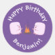 Pegatina Redonda Malvaviscos rosados por personalizado de bomberos