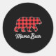 Pegatina Redonda Mama Bear Christmas Red Buffalo Plaid Family Match