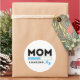 Pegatina Redonda Mamá cargando a bebé azul pronto será mamá