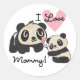 Un oso de panda de la mamá y del bebé diseña con un fondo y un texto rosado y corazones y un texto que lea a la mamá del amor de I en las camisetas, monos, tazas, tarjetas, pegatinas, bolsos, imanes, y más blancos.