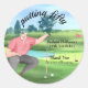 Celebrate a milestone birthday with this fun and unique “Putting Fifty” 50th Birthday Thank You sticker. The design features a watercolor-style golf course scene with a golfer sitting thoughtfully as he lines up the perfect putt for the number 50. The playful phrase “Putting Fifty” appears in an elegant script font, adding a lighthearted touch, while the party details are displayed in a classic serif font for a clean and timeless look. This invitation is easy to customize and perfect for golf lovers celebrating their big 5-0.