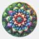 Pegatina Redonda Mandala celeste neón con resumen vibrante
