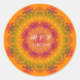 Pegatina Redonda Mandala floral étnica sobre antecedentes naranjas.