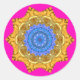 Pegatina Redonda Mandala Magic Blue & Gold sobre Fuchsia