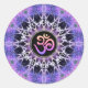 Pegatina Redonda Mandala rosa morado con texto curvo personalizado