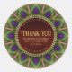 Pegatina Redonda Mandalas de Plumas de Pavón Dorado Gracias