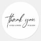 Personalizar los nombres y la fecha del evento en este sencillo y moderno pegatina redondo con un guión estilo manuscrito para las palabras "Gracias".