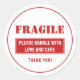 Pegatina Redonda Manejo frágil con correo y embalaje cuidadoso
