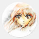 Pegatina Redonda Manga Anime Chica boceto ojos grandes kawaii lindo