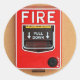 Fotografía de un dispositivo de alarma contra incendios colocado en una pared de madera