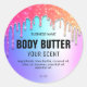 Obturando las etiquetas de la mantequilla del cuerpo del arcoiris. Atención, este pegatina no tiene brillo ni textura.