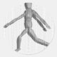 Mannequín masculino de madera con líneas onduladas de diferente ancho que crean la imagen. Diseño original en blanco y negro.