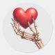 Pegatina Redonda Mano Skeleton elevando el corazón rojo