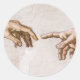 Pegatina Redonda Manos de Dios el Padre y Adán de Miguel Ángel