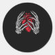 Pegatina Redonda Manos de esqueleto sosteniendo disfraz de Hallowee