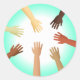 Ilustracion de un grupo de manos diversas de diferentes culturas y nacionalidades que se extienden y tocan entre sí. Diseño conceptual que muestra a la gente reuniéndose y dándose ayuda y apoyo mutuos. Imagen disponible en varios regalos y productos.