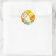Pegatina con una imagen de vidrio manchado con las manos rezando.