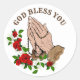 Pegatina Redonda Manos rezando Roses Rojos Rosarios Dios te bendiga