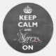 Pegatina Redonda Mantén la calma y la alegría en pizarra Divertido