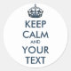 Pegatina Redonda MANTENER CALMA Y TU TEXTO - Cambiar fondo blanco