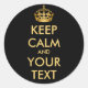 Pegatina Redonda MANTENER CALMA Y TU TEXTO - fondo personalizado