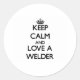 Pegatina Redonda Mantener la calma y amar a un soldado