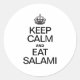 PEGATINA REDONDA MANTENER LA CALMA Y COMER SALAMI