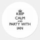 Pegatina Redonda Mantener la calma y el Fiesta con Ian