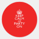 Pegatina Redonda Mantener la calma y el Fiesta en el acento rojo
