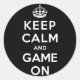 Pegatina Redonda Mantener la calma y el juego en marcha