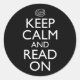 Pegatina Redonda Mantenga la calma y siga leyendo
