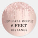 Pegatina Redonda Mantenga su distancia rosa goteo de purpurina rosa