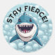 Pegatina Redonda ¡Mantente Feroz! Tiburón sonriente
