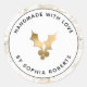 Mármol Dorado y Holly Hecho a Mano con Amor Regalo de Navidad Personalizado Pegatina Clásica Redonda... ¿Está haciendo ropa hecha a mano, adornos o accesorios para regalos navideños este año? Nuestra etiqueta/regalo de Navidad muestra un patrón de mármol blanco y falso dorado elegante que bordea el texto: "Hecho a mano con Amor" y "por Tu Nombre". Puede cambiar fácilmente su nombre y el nombre del producto en la plantilla de personalización.