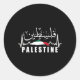 Pegatina Redonda Mapa de la bandera palestina caligrafía árabe