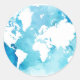 Pegatina Redonda Mapa Mundial De Los Blues De Las Acuarelas