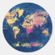 Pegatina Redonda mapa mundial de OCÉANOS y continentes