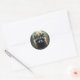 Pegatina Redonda Mapache lindo en hojas de otoño
