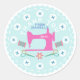 Pegatina Redonda Máquina de coser amor Pastel Azul