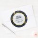 Pegatina de negocios con un elegante decorado de mármol azul marino y dorado. En la parte superior hay un círculo con un borde de Relieve metalizado de oro falso con el texto personalizado en el interior.