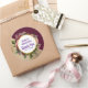 Cumpleaños gracias pegatinas con un patrón de mármol dorado y un sólido color burdeos en diagonal. Un círculo con un Relieve metalizado de oro falso que se extiende sobre un ramo de flores de bonito con rosas, claveles y otras flores. Personaliza con tus detalles dentro del círculo.