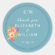 Pegatina Redonda Marco con Rosas, estilo Boda sobre azul retro